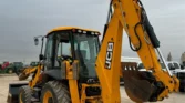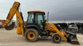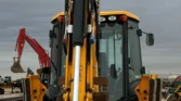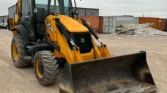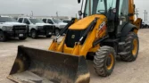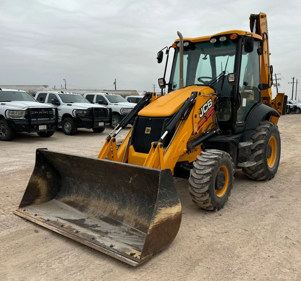 JCB 4.4L 4-cylinder diesel with powershift transmission (4F/4R) and 4WD. Enclosed cab with AC/heat and pilot backhoe controls. Equipped with loader and backhoe auxiliary hydraulics, 92″ front bucket with bolt-on edge, and 24″ backhoe bucket with teeth and extendable stick. Rides on 14-17.5 front and 19.5-24 rear tires.
